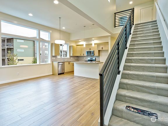 This home, the Aspen plan, is a 2111 SF, 4BR, 2.75BA, 2-car garage home w a grand, spacious great room, open kitchen w eating bar, quartz countertops, two-tone cabinet package w soft-close doors and drawers, water-resistant planked flooring, nine-foot ceilings on the main, primary suite w luxury bath & walk-in closet, & convenient main-floor laundry. These all-electric homes include energy-efficient mini-split heat & A/C units, fireplaces, & 80-gallon hybrid heat pump water heaters, plus an energy-efficient insulation package w soundproofing. The Alpengrove neighborhood has an appealing modern aesthetic w inviting front porches, both private & shared outdoor spaces, plus quick, convenient access to I-5 & all that Bellingham has to offer.