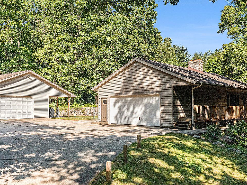 Experience the tranquility of this ranch home on 10 secluded acres, offering unparalleled privacy. The main level boasts an open kitchen & dining area, cozy living room with fireplace, spacious primary bedroom with ensuite, two additional bedrooms, and a full bath. The finished walkout basement offers daylight windows, a large family room, wet bar, den with cedar closet, fourth bedroom, and a third full bath. With the attached two-car garage & two outbuildings you will have plenty of storage or workshop space. Enjoy summer days relaxing or entertaining by the inground pool. Additional amenities include a generator, security system, reverse osmosis system, and underground sprinkling. This property offers a private location yet is not far from the conveniences of city living. Tour today!