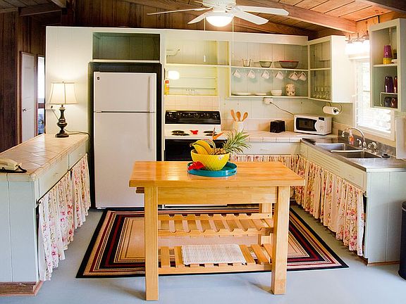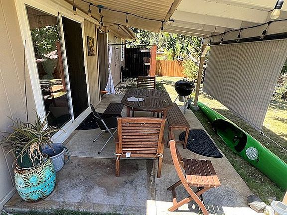 2 Homes. 2 bed 1 bath 960 sq ft. 2 car garage. 2 bed 1 bath 500 sq ft. This property is steps to beautiful Anahola Beach. The main house has a split AC system with a unit in each bedroom and one for the main living area so you can remain comfortable year round. It is all wood inside with vaulted ceilings, full kitchen with new range oven, extra large living room and dining room, two bed rooms with king and queen beds and furniture, one bathroom with large glass block walk in shower, and utility room with full size washer and dryer and sink. Garage door has a nice glass and metal door and an electric door opener. Outside, there is a covered patio for hanging out and having dinner, outdoor shower area with hot and cold water, and the yard is mostly level and fully fenced. The ADU is a cute and functional 500 sq ft 2 bed 1 bath home with large deck, and its own washer and dryer. It also has vaulted ceilings and is all wood inside.