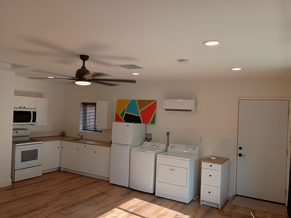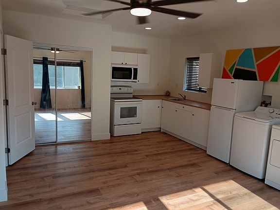 4234 Quail Road is a beautiful private studio located in the foothills of University Heights, conveniently located just a few streets away from UC Riverside. This is a private studio located on the 4230 Quail Rd address, home to the owners of a quiet 2 person household available for a single tenant. Enjoy walking distance to school or a very quick bike ride, gorgeous views, mountain access on a quiet, lovely caul-de-sac. Very quick highway access and local grocery stores and restaurants within walking distance. The 500 square foot studio features beautiful vinyl floors, fresh white walls, lots of light and an open layout that maximizes the space. A full kitchen (oven, refrigerator, microwave) and washer/dryer are included. The united has a bathroom with a shower. Additionally the unit has a air and heating unit. The home is located within a mile of the University of California, Riverside and Riverside Stem Academy. This home sits high on a hill with beautiful views all around. Water/trash is included. One parking space is included. Lease is for a single tenant only. Water is included. Electricity is on separate meter and bill (tenant responsible). No dogs. No smoking.