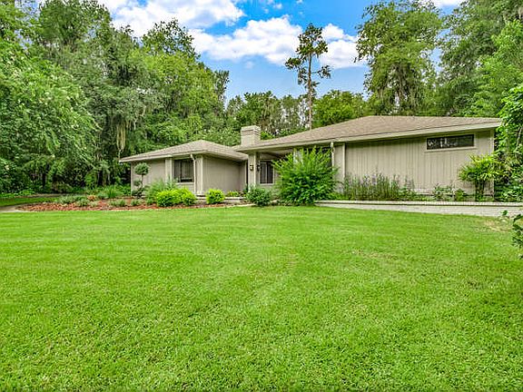 An Entertainers dream home. Here is your chance to get into the highly sought-after homes in the Kenwood neighborhood. These homes rarely hit the market and are a prize to win. This large, well laid out 3-way split floor plan is conveniently located and offers slightly angled walls throughout the home that would beautifully showcase your collection of artwork and memorabilia. The chef inspired kitchen is laden with beautiful granite counter tops. There is a large breakfast bar that opens out to the Family Room. The Dinette is situated between the Family Room and Florida Room and offers views of the wooded backyard. The large Family Room with its vaulted ceilings carries the eyes up with the Travertine fireplace wall and has built-ins on each side. The television mounted there will remain for the next lucky owner. Beyond the Family Room are the newly carpeted second and third bedrooms, as well as a large remodeled bathroom with raised dual vanity sinks and granite counter tops. This bathroom has direct access to the Florida Room to keep feet from running through the house. The entry foyer is tiled and the formal Living and Dining rooms feature dark wood flooring. This helps make up the warm and comfortable center of this cleverly designed home. The formal Living Room commands a wonderful, wooded, view through the tiled, glass enclosed Florida Room. It allows access through the triple-paneled glass sliders. When opened this space serves as the perfect indoor/outdoor entertaining area. The kitchen has serving access to the Florida Room to better keep the party attended to. A half bath and the fourth bedroom (or office) is located to the right of the double door entry Foyer. The large Master Suite has a view of the backyard through its own double slider door to the Florida Room. The En Suite features a sunken and fully tiled Roman style shower and a separate jetted garden spa tub. The water closet offers privacy and the walk-in closet is conveniently located between the two areas. The Kenwood neighborhood is nestled next to Haile Plantation, which you can access by foot through the wooded divide in the back of your property. Some of the wonderful amenities and conveniences of Kenwood are great schools (Alachua county elementary and middle) within 0.8 miles, Oak Hall school within 1.7 miles (private school), The Rock School (private) within 3.1 miles, ease of access to I-75 via Newberry Road (7.8 miles) and/or Archer Road (4.2 miles), 2.2 miles to Celebration Pointe, 0.6 miles to Veterans Memorial Park, 2.9 miles to UF Health/Kanapaha Emergency Center, 4.4 miles to the Oaks Mall, 3 miles to the Butler Shopping Plaza, property line backs up to protected Haile Plantation woods, and Bike/Hike trails within the community that branch to two different streets (24th Ave in one direction and 46th Blvd in the other direction). Finally, there is additional storage on the property with the storage shed located in the backyard. The owner has done the following updates and upgrades: New Roof in 2015, New inside and outside units for the HVAC in 2018, New Septic drain field and tank in 2017, New Attic Fan Installed in 2018, New Spa Tub motor in the Master Bath in 2018, New flooring in Laundry Room in 2020, and New carpeting in the 3rd and 4th bedrooms in 2020. The TV in the Family Room conveys with property. The swim spa does NOT convey. ***1-year home warranty included in purchase***