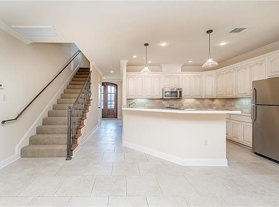 Well kept townhome located with easy access to interstates, shopping dining and medical. Open floor plan kitchen and living area with ceramic tile downstairs. Kitchen features granite countertops, white cabinets and stainless steel appliances.Half bath downstairs for guest. French doors leading to covered patio with a view of pond. Bedroom and 2 bathrooms located upstairs. Large primary bedroom with two large walk in closets. Primary bath features large jetted tub and separate shower.