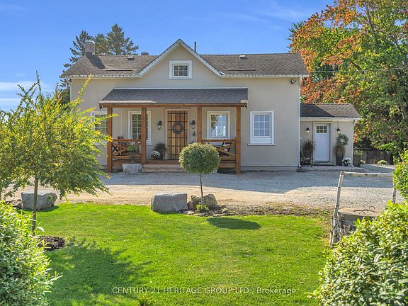Escape the city and discover this beautifully renovated 4-bedroom farmhouse on a private lot surrounded by rolling farmland and mature trees. Just 5 minutes to Hwy 400 and a short drive to nearby towns, this property offers the perfect balance of country living and everyday convenience. The home blends historic character with modern updates, featuring spacious principal rooms, a bright kitchen, and all the comforts todays families desire. Numerous windows capture stunning views in every direction, filling the home with natural light and showcasing the peaceful setting. Outdoors, the property shines with room to enjoy the outdoors, privacy, and plenty of parking for variety of vehicles, with room to build your dream garage. Whether you're hosting summer barbecues, gardening, or simply enjoying quiet evenings under the stars, this home is made for those who love the outdoors. Perfect for young families ready to trade subdivision living for space and freedom, or for empty nesters looking for a serene retreat, this home delivers the best of both worlds: rural charm with close-to-town convenience.