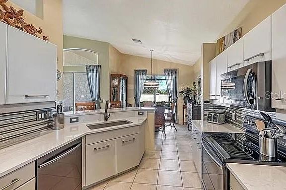 Welcome to the highly sought-after Cascades of Sarasota, a premier 55+ gated community where at least one tenant must be 55 years of age or older (no occupants under 19 permitted). This beautifully maintained home features soaring ceilings and a spacious split floor plan that includes a den, dinette, formal dining room, and a large screened lanai. The primary suite offers two generous walk-in closets and an expansive en-suite bath with a soaking tub, walk-in shower, and private water closet. Enjoy resort-style amenities at the community clubhouse, which features indoor and outdoor heated pools, a hot tub, sauna, tennis courts, pickleball, and fitness center.
