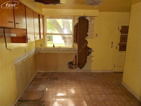 HUD Home. BACK ON MARKET!!! Price Reduced!! Flint School District. Cute 4 bedroom, 1 1/2 story home with hardwood flooring, two full baths, full basement and 1 car detached garage situated on a corner lot.