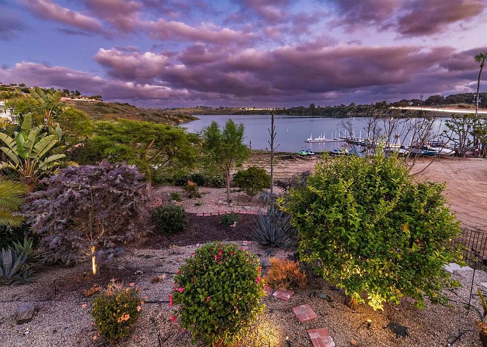 An amazing opportunity for an Airbnb or VRBO investment—or simply your own private waterfront retreat—this rarely available Carlsbad home is tucked away at the very end of a private drive shared with just one other home. This home opens up to sweeping, panoramic views of the Agua Hedionda Lagoon stretching all the way to the Pacific. Set on a nearly 20,000 sq ft lot, it offers exceptional privacy, breathtaking vistas from nearly every room, and direct access to the water—where kayaking, wakeboarding, and unforgettable sunsets can be part of everyday life. The flexible floor plan lives like a single story, with the primary suite located on the main level. Double front doors open to sweeping water views that immediately draw your eye across the open-concept living space. Vaulted wood-beamed ceilings and a stone fireplace add warmth and charm, while oversized sliders lead to a wraparound deck that stretches along the lagoon-facing side of the home—creating a seamless indoor/outdoor connection. The adjacent dining area with a second set of sliding glass doors, flows easily into a modern kitchen outfitted with quartz countertops, SS appliances, and a walk-in pantry. With natural light pouring in, the layout makes everything—from daily routines to entertaining—feel bright, open, and effortless. The main-level primary suite is peaceful and light-filled, with vaulted ceilings, large picture windows, and a beautifully refreshed ensuite featuring a walk-in shower, dual sinks, a vanity area, and a spacious walk-in closet. Downstairs, three guest bedrooms share a full bath and connect to a large, lounge-style living area with direct backyard access—perfect for game nights, movie marathons, or relaxed gatherings. A separate bonus room with custom built-ins adds extra flexibility, whether you need creative space or extra storage. Outside, the backyard is designed to take full advantage of the setting. A spacious stamped concrete patio offers plenty of room to relax or dine outdoors, while a built-in shuffleboard court brings a playful touch. Meandering garden paths wind through native plants, colorful blooms, and mature trees, gently guiding you toward the water’s edge—all framed by breathtaking sunset skies. With no HOA, a solar agreement already in place, and a location just minutes from Carlsbad Village, local beaches, and I-5, this is more than just a home—it’s a lifestyle. A rare chance to own a true waterfront retreat, where every day feels like a breath of fresh air.