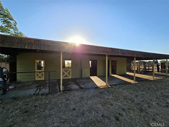 3 Bedroom 3 Full Bath 2623 sq ft Home nestled on 6 acres of Pasture on MID. Three horse stalls and a tack room for the Equestrian Dream. Newer Well. Huge Living room with French doors and a fireplace. Office with wood shelfing, built in desk with fireplace, could be 4th bedroom. Master Suite with French Doors, and large walk-in closet. Situated on one of Merced's most desirable areas and may be dividable. You can watch the sun rise in the East and set in the West plus a fabulous view of the mountains from the Kitchen. Pre-opened with Peg at Transcounty Title