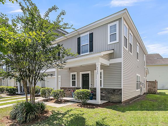 Welcome home to 4235 Scharite Street in Ashley Park! This fabulous, two-story end-unit townhouse with 2-car tandem garage is perfect for living and entertaining! This home features an open layout, 3 large bedrooms, and an oasis-like, private yard. From the moment you enter the door, you're greeted by a designer's dream. You will find multiple windows and natural light that highlight the great room's on-trend colors and finishes. The first floor also has a spacious entryway with shiplap, a mud room/ pantry, and a powder room. Kitchen features 42'' staggered off-white cabinets with crown molding, Luna Pearl granite with eased edge, Stainless steel microwave, dishwasher and range, Moen one-handle pull out faucet and a large, single-bowl sink.On the second floor, you'll find three bedrooms, two full baths, a laundry room, and tons of closet space. The roomy primary suite features a king-sized bedroom with trey ceiling, a full bathroom with a soaking tub, and a generous walk-in closet. Bathrooms feature nutmeg cabinetry and neutral ceramic tiles with double bowl sinks in primary bath. The home features 3" Hardwood flooring in color "granite" throughout main living areas, neutral Shaw carpet in bedrooms upstairs and stairs, Crown molding throughout main living areas, and 2" faux wooden blinds throughout home. Tankless hot water heater. Enjoy privacy with a FENCED IN BACKYARD and covered porch with beautiful roses blooming in the landscaped garden. The 2-car tandem garage has additional storage for a workbench area. Ashley Park is minutes from I-526, schools, parks and recreation centers, historic sights, the Bees Landing Library, shopping, and dining. Residents enjoy less than a 30-minute drive to Downtown, Park Circle, Mt. Pleasant, Summerville, and the beach! Come view this lovely townhouse and make it your home.