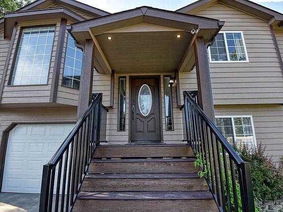 This beautifully remodeled 3 bdrm, 2 bath South Hill home is nestled on a quiet dead end. As you step inside notice the updates throughout the home. The heart of the home, the fully remodeled kitchen, features soft-close cabinets, granite counters, & SS appliances. From here, step out onto your oversized, covered composite deck, a perfect spot for hosting memorable gatherings & enjoying countless hours of entertainment. Featuring LVP floors, top down/bottom up blinds throughout. The updated bathroom complete w/ tiled shower & a new vanity, is shared with the primary bdrm w/ a walk-in closet, providing you w/ ample storage space. Downstairs is an updated bath w/ tile shower. The bdrm is equipped w/ mini split for comfort. A versatile flex space opens onto the patio wired for a hot tub. Unwind in your private oasis, complete w/ a relaxing firepit & a delightful fenced back yard w/ a play set! Storage is a breeze w/ the exterior sheds, providing ample space. The garage includes built in work benches.