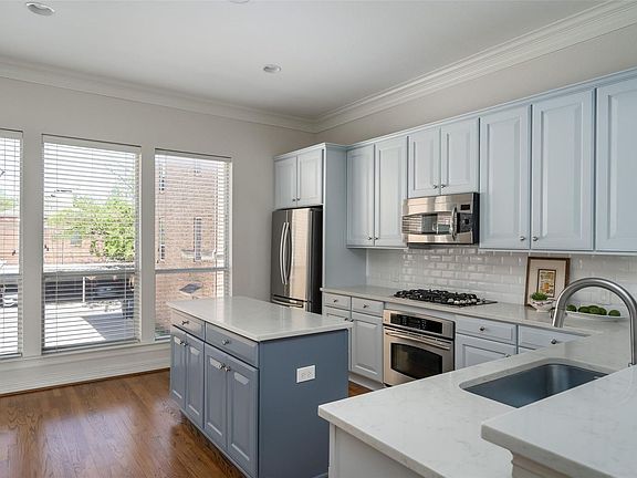 Welcome to this stunning three-story townhouse located in the heart of Dallas, TX. This property boasts three spacious bedrooms and 3.5 bathrooms, each featuring a double vanity and stand-alone shower. The kitchen is a chef's dream with stainless steel appliances, granite counters, a custom tile backsplash, and a convenient island for extra prep space. The living area is enhanced by a gas log fireplace and a built-in bookshelf, perfect for showcasing your favorite books or decor. The home also features beautiful wood floors, recessed lighting, and ceramic tile for a modern and sophisticated look. Step outside to a fenced yard or enjoy the view from your private balcony. With a two-car garage, you'll have plenty of space for parking and storage. This townhouse is not just a home, it's a lifestyle.