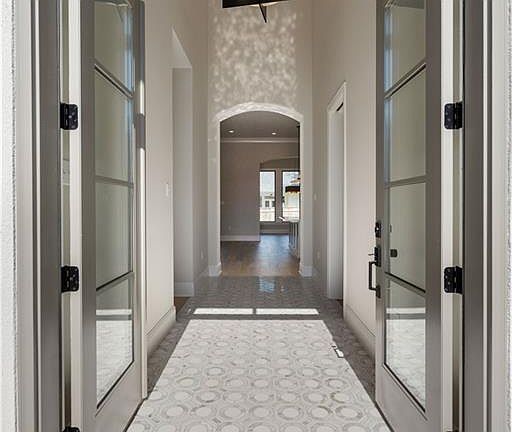 Tucked behind a private, gated courtyard, this 4-bedroom, 3-bath residence welcomes you with a dramatic two-story marble foyer that sets the tone of refined modernity. Graceful arched openings offer a subtle transition, creating definition while maintaining an open flow between spaces.