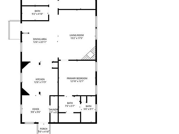 The primary suite is tucked privately on one side of the home and offers a spacious bedroom, large closet, and en-suite bathroom complete with double sinks, walk-in shower, and skylight. On the opposite side, two additional bedrooms share a beautifully remodeled bathroom—renovated in 2025 with modern finishes and stylish black-and-white tile. A convenient laundry room with washer and dryer included adds ease to everyday living.