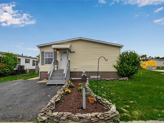 Welcome to 4237 Mohawk Parkway, a spacious and inviting home located in the sought-after Tuscarora Village community of Niagara Falls. This three-bedroom, two-bath mobile home has been thoughtfully maintained and updated, offering both comfort and value with a monthly lot rent of just $694. Inside, you’ll find a generous open layout designed for modern living. The large living room serves as the centerpiece of the home, featuring a cozy fireplace and oversized windows that fill the space with natural light. The dining area flows seamlessly into the kitchen, where you’ll find plenty of storage, white cabinetry, skylights, a double oven, and new light fixtures that brighten the space. All appliances included. A breakfast bar and built-in shelving add both charm and functionality.