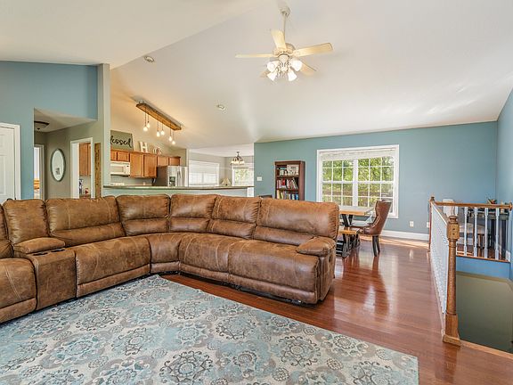 Beautiful basement rancher on a LEVEL CORNER LOT with over HALF AN ACRE! This well maintained home offers new tile in all bathrooms, new carpet in all bedrooms, all new flooring in the basement, new hot water heater, and newer roof replaced in 2011! Additional features include large open concept, eat in nook, beautiful quartz countertops, hardwood floors on main level, cathedral ceilings, all bedrooms on the main level, lots of storage space, finished basement, additional garage downstairs, outdoor deck for grilling and entertaining, and a large useable backyard with privacy! Enjoy all of this with no city taxes and no HOA fees! Seller will replace the dishwasher, microwave and stove to stainless with a full price offer!