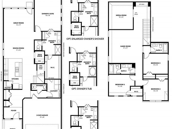 Media roomVersatile game roomElegant marble countertopsGenerously sized closetCustom cabinetryPrimary suiteOpen-concept space