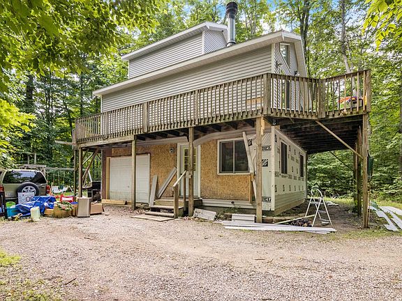 Tucked away at the back of the SugarLoaf Chalet development, this home is a true fixer-upper and presents a fantastic opportunity for someone ready to make it their own. Whether you're seeking a primary residence, a seasonal escape, or a smart investment, the potential is undeniable. Set on a spacious .56-acre, double lot, the property provides ultimate privacy in a quiet, established neighborhood. Step inside to discover an open-concept living space with cathedral ceilings, a wood-burning fireplace, and sliding doors that lead out to a wraparound deck—perfect for soaking in the serene setting with your favorite beverage after a day of work or play. A bonus loft adds flexible space for guests, a home office, or a cozy reading nook. Enjoy convenient access to everything that makes Leelanau County special—scenic golf courses, award-winning wineries, and the charming villages of Cedar, Lake Leelanau, Leland, and Glen Arbor. Spend your days exploring Lime Lake, Little Traverse Lake, and the sandy shores of Good Harbor Beach on Lake Michigan. Traverse City is less than 30 minutes away for shopping, work, and entertainment. Surrounded by natural beauty and brimming with potential, this property is your chance to reimagine and create something truly special in the heart of Leelanau.