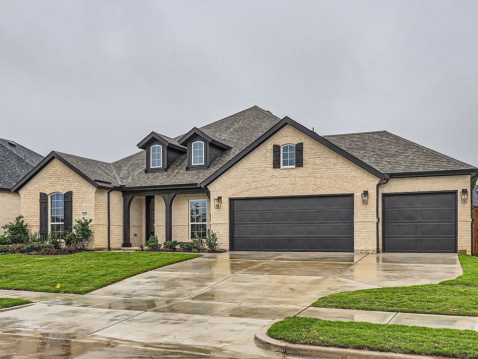 This stunning single-story brick home offers 2,896 square feet of living space, featuring 4 bedrooms, 3 baths, an office, and a media room. The spacious family room is highlighted by tall ceilings and a cozy gas fireplace, creating an inviting atmosphere. The gourmet kitchen is a chef’s dream, with extended upper cabinetry, a gas cooktop, double ovens, and a large walk-in pantry. The luxurious main bath features split sinks, a drop-in tub, and an elegant, oversized shower. Located on an expansive 70-foot lot, the home enjoys added privacy with green space across the street. The extended covered back patio is perfect for outdoor living and entertaining. A 3-car garage provides ample space for vehicles and additional storage. With its open floor plan, high-end finishes, and prime location, this home offers the ideal combination of style and function. Whether hosting family gatherings or enjoying quiet time, this property offers the perfect setting for modern living.