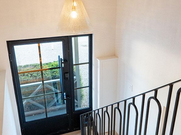 Designer iron railing staircasePrivate desert oasisBosch stainless appliances