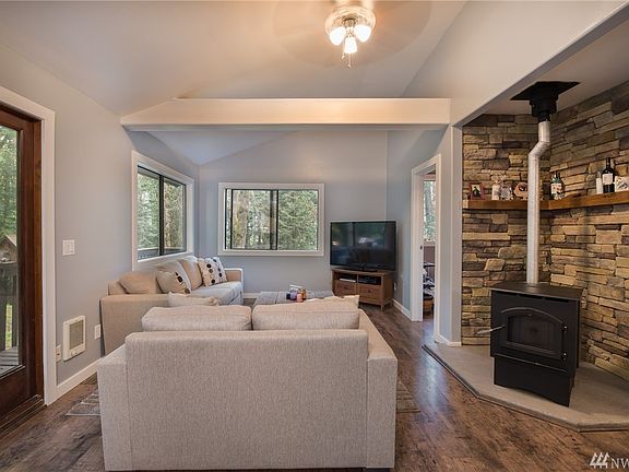 Absolutely gorgeous little home on an absolutely gorgeous huge 36,156 sf lot in your own private little woods at the end of a private little dead-end road. Just outside Bellingham city limits. Totally remodeled with new laminate floors ,appliances, kitchen counters, bathroom, comp roof and new pellet stove. Large deck that wraps half the house.Walk in unpack and enjoy this hassle free home, park like yard and the natural setting of this whole package. This beauty sits on 4 separate lots.
