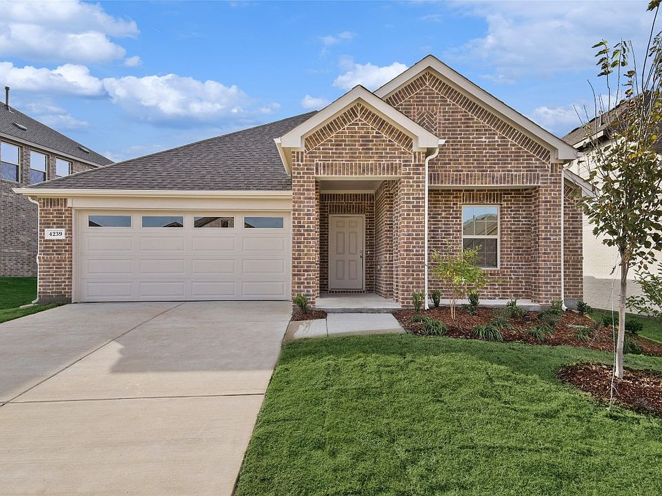 Brand new single-story home by Gehan Homes, located in historical Clements Ranch! This home has wonderful curb appeal with distinctive architecture, white painted brick, and a beautiful 8’ entry door. Work from home in the convenient Pocket Office, which includes a desk with upper and lower cabinets. The kitchen boasts a large island in the center, as well as a 5-burner stainless steel range, modern tile backsplash, and ample 42” cabinetry. The flooring in the main living area of the home is easy-to-clean Luxury Vinyl Tile with a hardwood look. Clements Ranch is built on land formerly owned by Texas Governor Bill Clements. The old homestead now is the community’s Amenity Center, which comes with a gym, a pool, and covered pavilion. There are 5 ponds throughout the neighborhood - one is especially well-known for it’s fishing pier where homeowners have caught lunker bass. A hike and bike trail winds around the ponds, and a park features soccer fields and a basketball court.