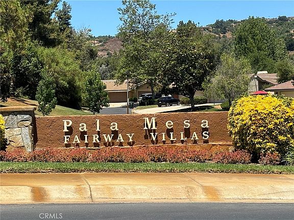 First time on market! This wonderful home features 2 bedrooms, plus a den and 2 full baths. Lovely open floor plan with vaulted ceilings and windows and slider across the back that allow for lots of natural light. The living room area has a fireplace and the dining room has a full mirrored wall which makes the room feel double in size. There is a den space in which you could enjoy as an extra sitting room, or tv area. The kitchen has a lovely window from which to enjoy the view and is outfitted with range, newer dishwasher and the refrigerator is included. Off the hall, there is a full bathroom, and bedroom that looks out over the side courtyard. The master suite is spacious and private with its own slider. The master bath is open to the bedroom area and features a dual sink vanity. The back yard features a serene patio surrounded by mature trees and a gorgeous elevated golf course view! The home has a newer A/C unit, furnace and water heater. The garage is a 2-car attached. Pala Mesa Fairway Villas is a desirable community featuring community pool & spa and plenty of green areas to enjoy.