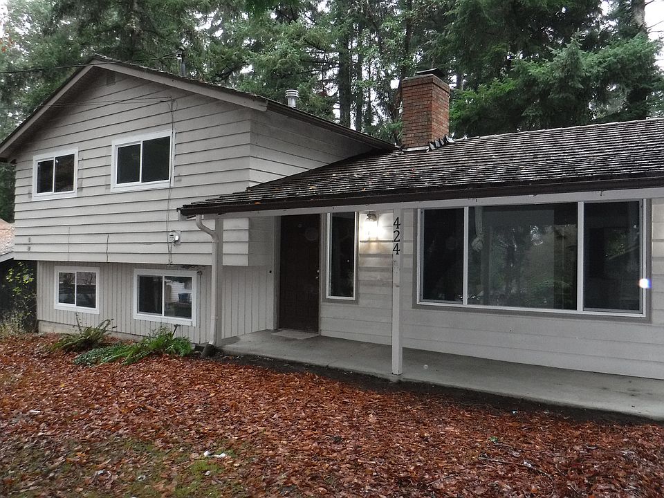 Very private, no neighbors behind you to look into your backyard, only natural Northwest beauty of trees, bushes, and ferns. The kitchen glass slider goes out to 2 decks for outdoor dining. Or use the basement patio for another outdoor space. Room for kids to run around too! Fully fenced backyard. One car garage plus has room for your car and storage. It has built-in cupboards and shelving with room to move around.