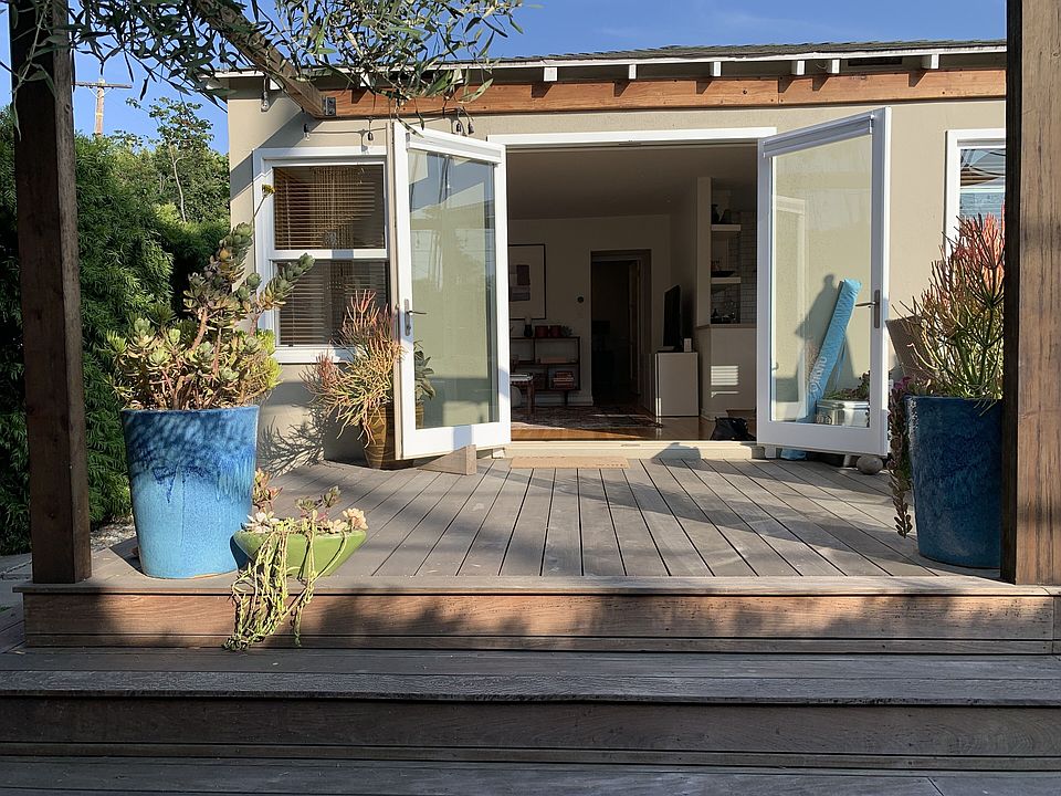 Our Santa Monica cottage was a true oasis! Tucked away behind tall bushes with off-street parking, stepping through the gate felt like entering a secret garden. The deck, adorned with twinkle lights, was our favorite spot, and we kept the French doors open all day to let the light and ocean breeze flow through. The cottage was spotless and beautifully designed with a modern touch, offering a peaceful and uplifting space during my partner's medical treatment at UCLA. It was absolutely perfect for our needs, and we couldn't recommend this gem enough for anyone seeking comfort and tranquility.
