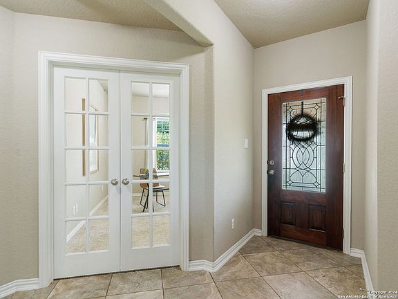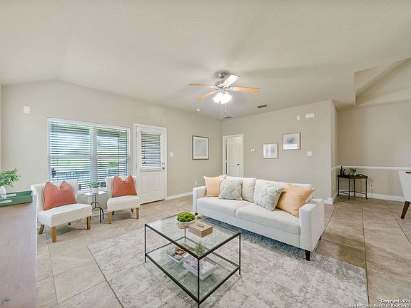 Gorgeous, Move-in ready 3 bedroom home plus study. You'll love the eat-in, updated kitchen with stainless steel appliances, granite countertops, tile backsplash, & an island. Recent updates include new carpet and some fresh interior painting. This beautiful open design features split bedrooms, high ceilings, rounded corners & a study. The primary bedroom boasts an ensuite with a walk-in closet, dual sinks, and a garden tub. You'll enjoy entertaining family & friends on the covered patio in your fenced backyard which backs to Schlather Park. Walking distance to the neighborhood pool. Enjoy the 40 acre park with paved walking trails, playground, covered pavilions, picnic areas, and frisbee golf. Conveniently located to highways, shopping, dining, and Randolph AFB.