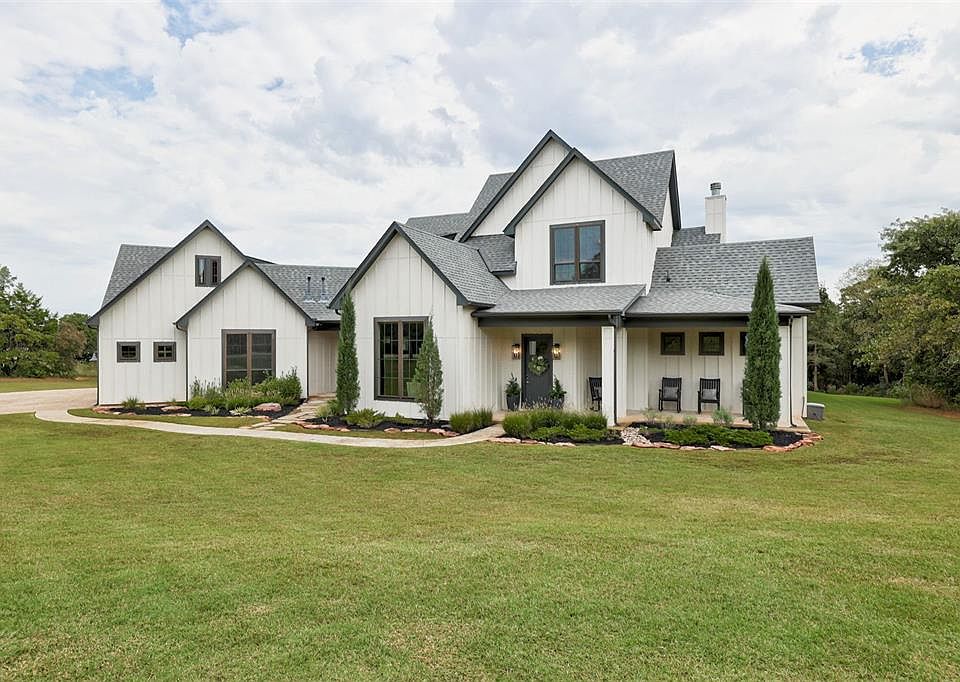 Welcome home to this exquisite Arcadia retreat that masterfully blends timeless elegance with modern luxury. This stunning former St. Jude's Dream Home is filled with custom touches and luxurious features that make a night at home feel like a 5-star resort. Every detail of this home has been thoughtfully curated, from the soaring ceilings and expansive windows that bathe the interiors in natural light to the high-end finishes and designer fixtures that set the tone throughout. The chef’s kitchen is a showstopper with professional-grade Bosch appliances, custom cabinetry, and a grand center island perfect for both entertaining and everyday living. Custom cabinetry also extends to the Butler's pantry that has a built-in Bosch high-end coffee maker and plenty of built-in storage! The primary suite is a tranquil retreat with windows that face the wooded expanse in the distance and provide a magical place to wake up to. The en-suite offers a spa-inspired escape, complete with a soaking tub, oversized walk-in shower, his and hers vanities, vaulted ceilings, and an oversized walk-in boutique-style closet. The upstairs boasts two additional bedrooms with their own private bathroom that has had no detail overlooked! Step outside to enjoy multiple outdoor living spaces designed for year-round enjoyment, including a covered patio with a fireplace, perfect for evenings under the stars, two spacious front porches that provide plenty of areas to enjoy a morning coffee, and a fire pit perfect for an evening campfire after a day at Parkhurst Pumpkin Patch. Additional highlights include a statement entry and dual front porches, wide-plank hardwood flooring, a spacious media room with a built-in Bosch Microwave and beverage fridge, smart home technology, and an oversized three-car garage. All of this is set on a picturesque lot, on over 2 acres (mol) in one of Arcadia’s most desirable communities, combining privacy, style, and sophistication in one extraordinary package.