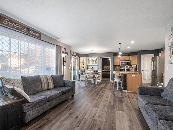 Beautifully updated ranch in Penn Schools! Located on a corner lot in Newbury Pointe, this move-in-ready home features an open floor plan with spacious living room and fireplace insert, large kitchen with granite countertops, island sink, stainless steel appliances, and dining area. Convenient mud/laundry room off attached garage. Recently remodeled primary suite with private bath and walk-in closet. Two additional bedrooms and full bath on main level. Brand-new vinyl flooring + newer carpet throughout. Mostly finished basement adds family room + home theater and abundant storage. Fenced backyard with newer vinyl fence, concrete patio, and fire pit—perfect for outdoor entertaining. Major updates: Roof (2 yrs), high-efficiency HVAC (1 yr), water heater (2 yrs), water softener (4 yrs), RO system to sink & fridge (2 yrs), dishwasher (1 yr). Excellent condition, modern upgrades, great location—don’t miss this one!