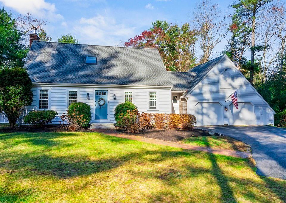 With access to the Apple Hill Lane Assn road, dock and water, this beautiful cape is ideally located near Chandler Elementary School, conservation trails, local amenities and the commute. The spacious kitchen flows seamlessly into the dining room as well as the cozy, fireplaced living room with sliders leading to a deck that overlooks a large, level, fenced backyard. The first floor also includes a powder room with laundry. Upstairs, the primary ensuite features beamed cathedral ceilings with skylight, two closets, and a 3/4 bath, accompanied by two additional bedrooms and a full bath. The finished walkout lower level provides 600 sq. ft. of versatile space with ample storage and new carpeting. An attached two-car garage offers storage above, while a newer roof and outdoor shower add convenience and appeal. This home is the perfect blend of charm and functionality, offering everything you need in a Duxbury residence. New: AC, deck, gutters, LL carpet. Updates to 1/2 bath and full bath.