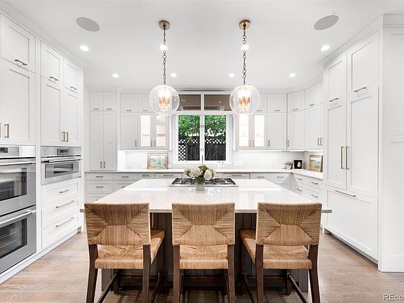 One of Cherry Creek North’s most sought-after blocks! An exquisite single-family home in the heart of Cherry Creek North with thoughtful updates throughout. This transitional style home was recently renovated with a gorgeous high-end kitchen, white oak wood flooring throughout the main and upper level, designer wallpaper, new paint, and updated baths. The kitchen boasts two dishwashers, two warming drawers, an oversized refrigerator, gas cook top, double ovens, customized cabinetry, a butler's pantry and a gorgeous creamy leathered granite countertop. There is a perfect blend of formal and casual living spaces throughout this spacious home. Featuring five bedrooms, six baths, and a rare oversized three-car attached garage with an additional parking space outside the garage. A dramatic three-story circular staircase anchors the home, complemented by custom millwork, refined built-ins, soaring ceilings, and an open, light-filled floor plan. The basement boasts a large family room with a bar area, two additional bedrooms and baths, and a ton of storage. The multiple outdoor spaces are impressive with a sprawling front patio and lawn, a spacious balcony upstairs, and a private backyard/courtyard area with a water feature. This is an ideal property for entertaining. With unmatched walkability, you’ll enjoy easy access to Cherry Creek’s finest restaurants, boutiques, galleries and the award winning Bromwell elementary. A true one-of-a-kind retreat, this home offers an extraordinary opportunity to live in Denver’s most prestigious urban neighborhood.