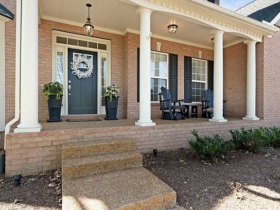 Located in the sought-after River Landing neighborhood, this spacious home blends traditional charm and modern amenities in a fantastic location minutes from downtown Franklin. Well-appointed kitchen with stainless appliances and dedicated desk/office/planning nook right off the breakfast area—ideal for homework, crafts or managing a busy household. Open, airy, light-filled living room with a soaring vaulted ceiling, loads of windows and a cozy, gas fireplace framed by built-in shelving. Formal dining room and office off the entry foyer. The primary suite is conveniently located on the main floor, while three additional bedrooms upstairs provide privacy for family or guests—one ensuite and the other two have a Jack/Jill bath. The primary suite has new lighting, painted bathroom cabinets and a completely redesigned custom closets including built-in safe. Massive, second level bonus/rec room with a full, walk-in storage area. Outdoor living is elevated with a fabulous all-seasons porch with gas fireplace overlooking the private, fenced backyard & patio perfect for gatherings, grilling, or just unwinding after a long day. Arguably one of the best in the neighborhood! Spacious 3-car garage provides ample space for large vehicles and storage and is equipped with a new Gladiator Geartrack channel system. Other major updates and upgrades since purchase include: Crawl space encapsulation with dehumidification, new carpet up, ceiling fans in all upstairs bedrooms, can lighting in bonus room, new lighting fixtures in all full bathrooms, living area, front porch and exterior of garage, new dishwasher, downstairs HVAC with larger unit and improved air ducting, front/rear landscaping with garden bed drip irrigation, backyard garden wall and 5’ pool code compliant aluminum fence. Don't miss the walk-thru video: https://youtu.be/pwhPZ3RYXZU
