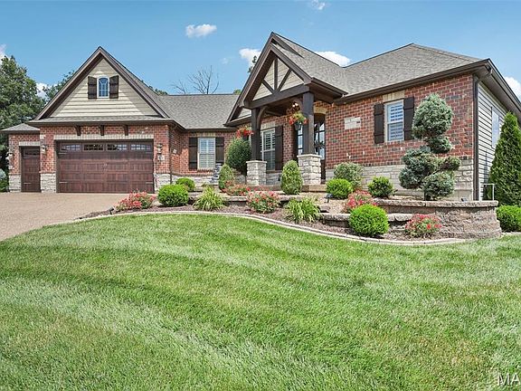 Tucked at the end of a quiet cul-de-sac and backing to serene woods and Peruque Creek, this custom-built home offers peaceful privacy with showstopping outdoor living. The backyard is a true retreat—professionally landscaped with a solar-lit patio, built-in fireplace, and a two-level covered deck featuring a hot tub and tree-lined views. Inside, the home is move-in ready with quality finishes throughout, including triple crown molding, hardwood floors, built-ins, and smart home technology. The main floor boasts an open-concept layout with a chef’s kitchen, stylish living room, and spa-inspired baths that blend function with elegance. Step outside to entertain or unwind on the expansive deck or around the firepit. Downstairs, the finished lower level is made for entertaining with a custom bar—complete with a ceiling made from reclaimed 100-year-old barn wood—and a bookshelf that doubles as a hidden door to the storage room. There is also a theater room, a 4th bedroom, and a 3rd full bath, making it perfect for guests or extended stays. Thoughtfully designed and beautifully finished, this home is truly one of a kind!