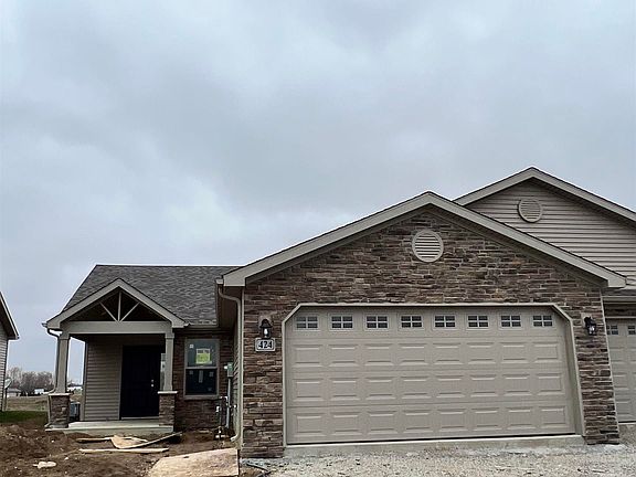 New 2 Bedroom, 2 Bath Villa Home Custom Built Hickory Cabinets throughout the home. Premium Stainless Steel Dishwasher, Microhood and an 8" Stainless Steel Sink with a Spot Resistant Stainless Pull Out Kitchen Faucet Primary Bedroom with Lighted Ceiling Fan and Walk-In Closet Primary Bath with a 5' Walk-In Shower and a 36" tall Vanity Upgraded Cultured Marble Vanity Tops, High Rise Elongated Toilets and Upgraded Bath Fixtures in Both Baths Chamfer Ceiling with Lighted Ceiling Fan in the Great Room Locking Vinyl Plank Flooring located in Kitchen, Dining, Great Room, Laundry Room, Foyer & both Bathrooms. Rounded Drywall Corners and Wide Painted Trim throughout. 95% Efficient Gas Furnace and Central Air Conditioning with Fresh Air Ventilation and Programmable Thermostat 50 Gallon Electric Water Heater Upgraded Finished 2 Car Garage with 30" Pull-Down Attic Stairs, Wireless Keypad and Garage Door Opener Upgraded Front Door with a Sidelight 6' Anderson Glider Patio Door leading to a Covered Porch Structure Attractive Exterior with Address Stone, Upgraded Exterior Light Package, Vinyl Siding, Landmark Shingles and Partial Stone Front
