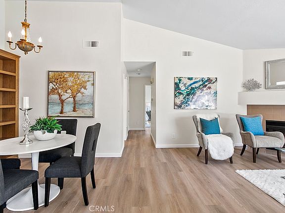 Gorgeous bright corner home with no one above or below. Top floor with beautiful vaulted ceilings with a corner lot location makes this home very bright all the time. Owner just spent over $20,000.00 in upgrading to brand new LVP flooring, painting, mirrored closet doors, new window coverings, and reglazed bathtub. Just move right in. Primary bedroom also has vaulted ceilings with a great private balcony. One car attached garage right below the home. Great balcony at the entry makes this home great for entertaining with its indoor outdoor space. Association offers pool and tennis. Indoor laundry with washer and dryer. Low HOA fees of $479 per month and low taxes and no Mello roos. Walking distance to shopping and restaurants.