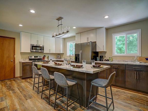Showings begin 8/20. Two glorious Maple trees welcome you to this beautiful & spacious ranch with its fresh & brightly updated interior! You'll love the 1st impression made by the stunning new railing and the kitchen is so awesome the seller hates to leave it! Absolutely loaded with gorgeous cabinetry and featuring a huge island, it's great for everyday life and perfect for entertaining, too! Gather family and friends for football, BD parties or the holidays in the generously sized dining or living room, or enjoy the fenced backyard! Lower level has a 1/2 bath, rec. room area and an office, ideal for working at home, crafting or just hanging out. New LVT flooring & bedroom carpet, updated bathrooms, and some new windows so you can just move in and invite everyone over! All meas. approx.