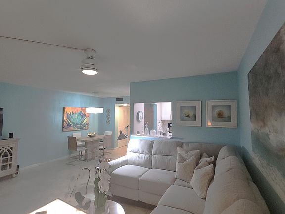 Spectacular penthouse with 1 bedroom 1 and half baths located in Century Village West Palm Beach. The condo features front Impact windows, water heater is 2022, AC condenser is 2021, all stainless-steel appliances, tile floors throughout, very stylish chandelier over the dining room table and is beautifully renovated, has lights under the kitchen cabinet, there is plenty of closet and storage space. The condo has an extra-large Lanai with breathtaking views of the lake and club house, you can also enjoy watching the sail boats go by from your lanai or join in the fun and sail on the lake, which is included in your low maintenance. There is assigned parking with quest parking for your family and friends, The roof is approximately 3 years old and there are no assessments. This condo is located in a great location close to Haverhill manned gate entrance, the barber shop and hair/nail salon. The club house which has numerous activities and clubs to join.