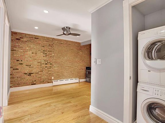 Fresh, stylish, and ready now. This beautifully renovated 3-bedroom, 1-bath blends modern upgrades with classic NYC charmexposed brick, high ceilings, and hardwood floorsplus your own private balcony for fresh-air hangs. The updated kitchen features stainless-steel appliances, dishwasher, and a sleek wine cooler, and everyday living is easy with an in-unit washer/dryer.