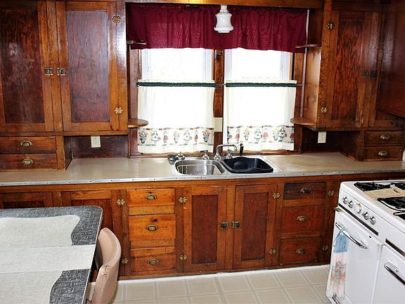 Charming character wood work and light fixtures plus a functional gas/wood burning stove in the kitchen. This fixer upper is a 1.5 Story as the upper level is completely unfinished. Main living/dining and bedrooms have wood floors under carpeting. Full basement with laundry hookups - Windows, hot water furnace, water heater, majority of electrical, and plumbing in bathroom were all updated in 2007. Roof replaced in 2004. Foundation is stone and block. Fireplace is not functional. Property is being sold "as is".