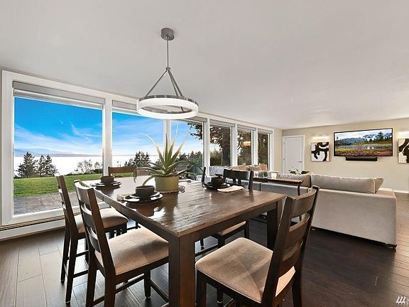 3 Bedroom, 3 Full Bath located in sought after Edgemoor Neighborhood in Fairhaven. 3,200 sq. ft. including basement. This mid-century modern home has gone through an extensive renovation. Upon opening the entrance door to the main level, you're immediately engulfed with breathtaking western-facing, saltwater, and San Juan Island views through the open floor plan living space and floor-to-ceiling windows. Main level living at its finest, with a VIEW primary bedroom en-suite. Over 1000 sq. ft. front patio for the ultimate entertaining/sunsets. Large Flat lot.