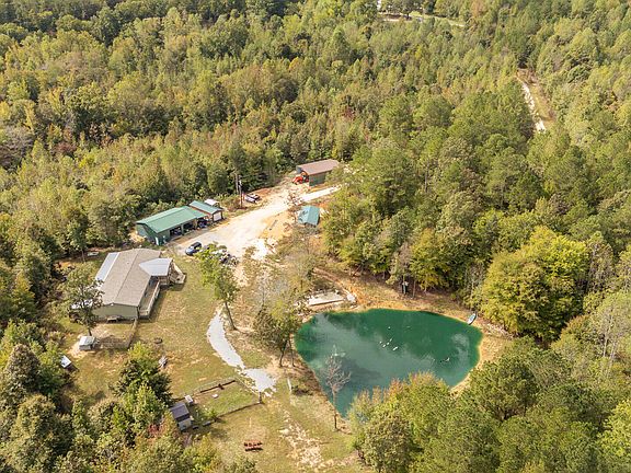 Welcome to 424 Firetower Rd. in Camden, TN — a true hunter's retreat on over 90 acres of pristine Tennessee countryside. This property was built for outdoor enthusiasts and wildlife lovers. The land features multiple food plots spanning 5 acres, planted with clover, chicory, rye, and alfalfa. The seller has practiced quality deer management, creating the perfect habitat with abundant bedding, food, and water sources. There are approximately 3 miles of 10-foot-wide trails winding through the woods, ideal for hunting or riding. You'll also find several mineral licks, along with multiple hunting stands and blinds that remain with the property — everything a serious hunter needs in one place. In addition to its premier hunting ground, the property offers a large stocked pond with a fountain and a white sand beach overlooking the water. The pond is stocked with bluegill, fathead minnows, and bass, providing great fishing and relaxation. There's also an electric hookup at the beach area, perfect for campers or outdoor gatherings. A four-season creek meanders throughout the property, adding to the natural beauty and providing a consistent water source for wildlife. The home, built in 2022 on a permanent foundation, features over 2,400 sq. ft. of open-concept living with 4 bedrooms and 2 bathrooms. The kitchen is spacious and modern, complete with stainless steel appliances, abundant cabinetry, and a large island that opens to the living area. The primary suite includes a double vanity, a dual-head walk-in shower, and a large walk-in closet. Enjoy peaceful mornings and evenings on the front and back decks, which include an ADA-accessible ramp, or entertain friends on the screened-in walkout deck featuring an 8-seater hot tub and bar area. The 30x40 two-car garage/workshop with a 12-foot lean-to offers even more versatility. It includes a fully finished in-law suite with 1 bedroom, 1 bath, and cedar walls milled from the property. The suite has dual mini-splits, a kitchenette, and plenty of charm. The shop itself is spray-foam insulated, piped for heated floors, and equipped with 220-amp electrical service. It also features three metal workbenches, multiple outlets, and 12x10 garage doors for easy access. Additional buildings include a 16x32 wired roll-up shed workshop with UTV ramps and three oversized carports for tractors and equipment. The property also includes a refurbished 1960 Massey Ferguson 35 red tractor, animal enclosures, fencing, and a small apple orchard. Other highlights include a concrete storm shelter, water softener system, 6-camera security system, and a long private driveway with new gravel. Completing the rural charm are 8 geese, 6 ducks, 2 turkeys, and 4 barn cats, all staying with the property. If you've dreamed of owning a private retreat with top-tier hunting land, modern living spaces, and unmatched tranquility, 424 Firetower Rd. offers it all. A rare opportunity where luxury meets the outdoors — and every acre tells a story
