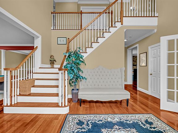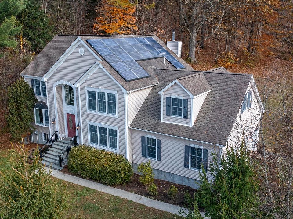 Nestled on a serene and scenic stretch of Gage Road in the town of Southeast, this exceptional 4 bedroom 2.5 bathroom Colonial offers a perfect blend of elegance, comfort, and privacy. The dramatic foyer welcomes you with abundant natural light and gleaming cherry wood floors, setting a warm and inviting tone. A dedicated home office provides a quiet retreat for work and study, while the formal living room, adorned with decorative columns, is currently used as a recreation space. The spacious family room can accommodate even the largest flat-screen TV, perfect for movie night or game days. The chef's kitchen features timeless design, generous counter space, and an adjacent breakfast nook bathed in morning light. The formal dining room, with its ornate ceiling, is perfect for entertaining, and a charming half bath completes the main level. Upstairs, the primary suite is a private sanctuary, offering double doors, a spa-inspired bathroom, and an enviable sized closet. Three additional bedrooms provide ample space for family or guests, accompanied by a pristine hall bath. A 500+ square foot roughed-in bonus room above the garage awaits your personal finishing touches, and the full unfinished basement with high ceilings could add even more versatile space. Outside, a beautiful patio overlooks a wooded backdrop where no future homes can be built behind, ensuring lasting privacy. There is easy access to the nature paths in your ample wooded acreage, perfect for hiking or ATV adventures. Car enthusiasts will appreciate the rare three-bay garage, connected to a combined mudroom/laundry area. Energy efficiency is enhanced by solar panels, while an automatic whole-home generator provides peace of mind during power outages. Although this home offers a sense of seclusion, it is only minutes away from major highways and the Connecticut border, providing the ideal balance of tranquility and convenience. Don't miss the opportunity to make 424 Gage Road your own!