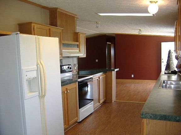 Well tended DW home in move-in condition. Hugh living room, lg galley style kitchen w/dining area, separate utility room. 2 walk-in closets, MBA has deep tub plus separate shower. Super clean. Detached 3 bay garage has concrete floor, florescent lighting and numerous electric outlets. Approx 1/2 of the property is wooded at the back, a fence marks the rear boundary. All this plus a wonderful view.