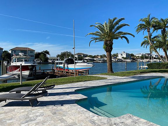 Spectacular 4 bedroom waterfront home, located on one of the most admired streets in Belleair Bluffs. This home is settled on a gigantic lot 100x145! Home has a mammoth heated pool. 2014 Dock with two boat lifts one 20k lb and on 16K lb situated on Very Deep "sail boat" Water, 2012 Sea Wall, and 2013 AC. Not only does this home have a much larger lot then most of the waterfront homes, but it is positioned facing West, allowing you to catch the beautiful sunset every night with your family. There are brand new multi-story homes going up across the canal and all over the neighborhood, so this street/community is going to become even more impressive then it already is.