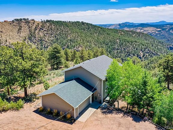 Spectacular Mountain home with unsurpassed views; Exceptionally remodeled throughout with modern finishes; Light, bright and open with stunning vaulted ceilings and windows galore; Beautiful hardwood floors on main and upper levels; Gorgeous spacious kitchen with slab granite and stainless steel appliances; Sunny, southern exposure family room with adjacent eating space and hearth-like pellet stove; Large, comfortable master suite on the upper level includes a private loft and five piece bath with double sinks; Main level houses an additional bedroom and/or office with a full bath and an adjacent laundry; Enjoy the spectacular views from the basement too while playing pool or just hanging out at the bar; Accommodate additional guests in the third basement bedroom with access to the half bath; Oversize garage is finished with cabinets and space to work on hobbies or projects. About an hour from downtown Denver. Brand new whole house furnace put in this past winter.