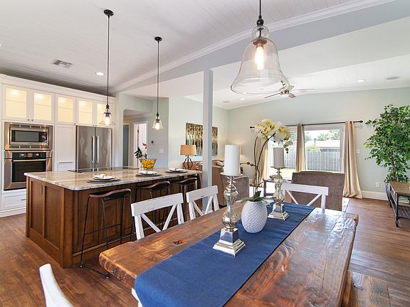 This classic mid-century modern home has been completely renovated with an open floor plan and vaulted ceilings. Refinished original oak floors, new lighting, ceiling fans, baseboards and crown molding throughout. Custom kitchen with island, marble countertops, 42" custom cabinets, and Bosch stainless steel appliances. Both bathrooms have been updated with marble counters and floors and all new fixtures. Back yard is completely enclosed by a privacy fence. The immaculate yard is maintained by an automatic irrigation system with a private well. Resurfaced brick drive and patio. Quiet street with limited traffic in an excellent school district (Aloma Elementary/Glenridge Middle/Winter Park High)