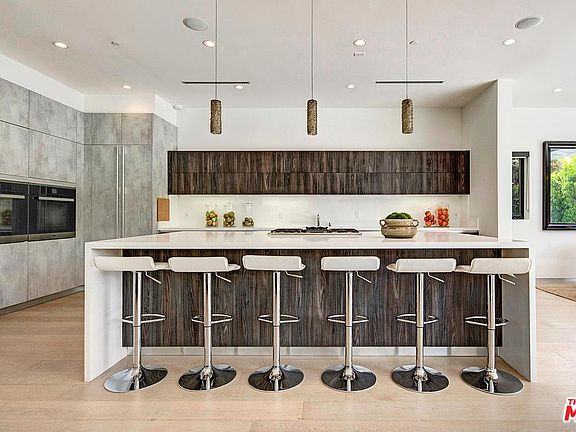 An exemplary cutting-edge property showcasing nearly 5,000 sq ft of indoor/outdoor CA living! A Zen-like experience starts w/soothing water accents along the walkway, leading to a dramatic 2 story, glass-enclosed entry hall. Custom Miton Italian Kitchen is the definition of modern elegance w/Miele appliances, center island & built-in breakfast bar. Floor-to-ceiling Fleetwood door systems give way to a private deck featuring zero edge pool w/Baja deck, hot tub & outdoor shower. The 2nd level patio (over 400 sq ft) is perfect for watching the sunset before retiring to the Master suite, which features a sitting area, fireplace, roomy built-in closet, & a balcony overlooking the pool. Tranquility awaits in the spa-like master bath appointed w/dual sinks, deep soaking tub & over-sized shower. Outfitted w/white oak flooring, skylights, Ortal fireplaces, custom-blown glass lighting, Porcelanosa bath tiles & Crestron smart home system. A contemporary, state-of-the-art oasis not to be missed!