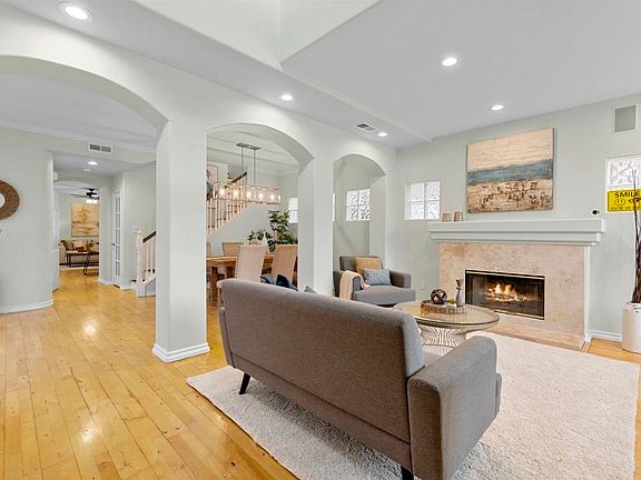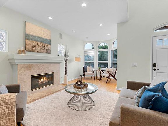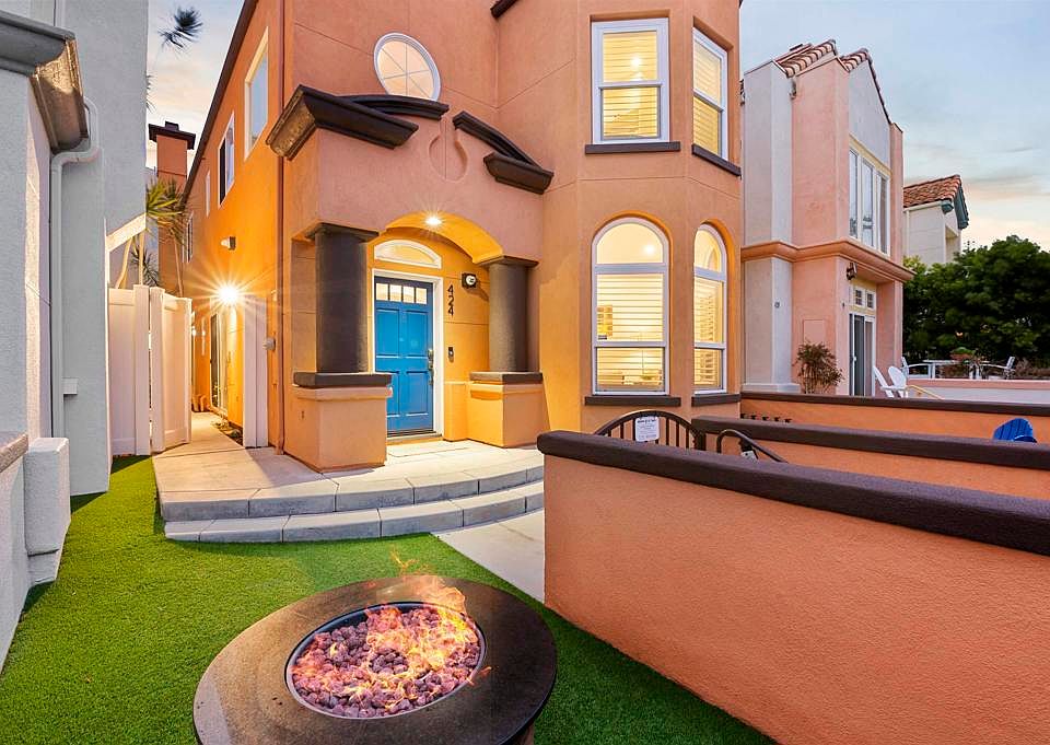 Downtown Oceanside 4 bedroom ROW home! Pacific Village 3 short blocks to beach, walkers paradise score, excellent for work & pleasure in the downtown district, 2366 SF, clean & well maintained, ocean view from spa ready roof top deck, hardscaped elevated front yard with firepit perfect for entertaining family, friends, neighbors. Vaulted ceilings, 3 fireplaces, wood floors, plantation shutters throughout entire home, open kitchen to den/family room with breakfast bar, kitchen aide appliances including refrigerator, granite counter tops, plenty of cabinet space, pantry, Moen fixtures throughout home. TWO car attached garage has direct access to home, storage cabinets & overhead storage racks. All four bedrooms upstairs, master suite features fireplace, walk in closet with custom closet system adds more shelves, drawers, space for hanging wardrobe, master bathroom dual sinks with separate shower & soaking tub. Upstairs laundry room includes washer & dryer! Turnkey Single Family Home just 3 short blocks to the ocean!