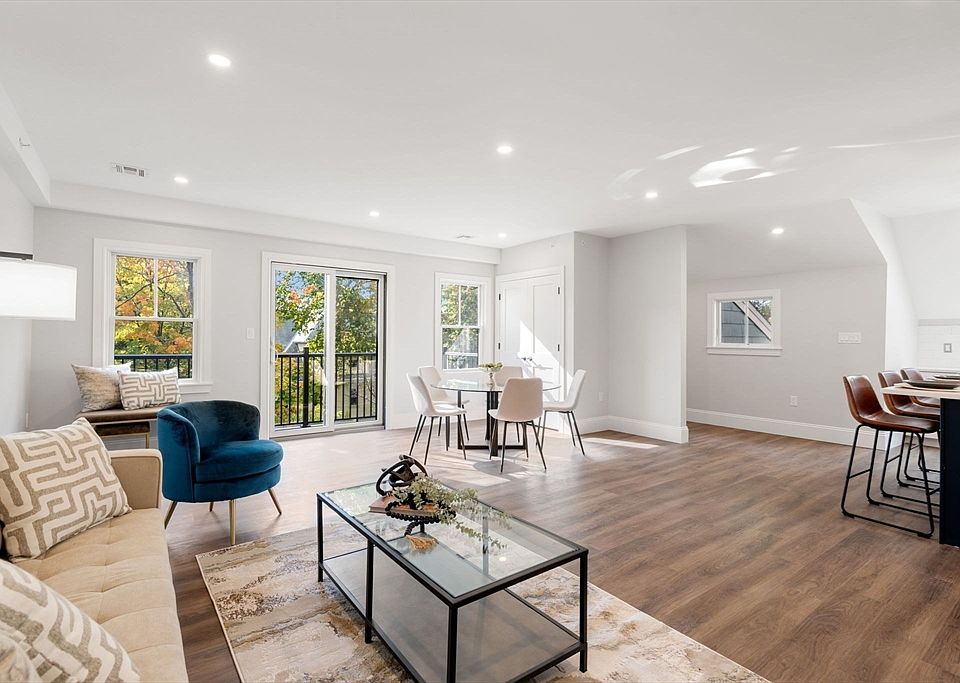 Welcome home to Newtonville. One unit remains in thie luxury new gut renovat! This luxurious four+ bedroom, four bathroom duplex residential condo has been fully renovated by a premier developer and is part of a new 4-unit association. The property boasts nearly 3,000 square feet of living space over two levels and includes two parking spaces as well as storage. Large windows throughout the home allow for plenty of natural light to flood the space. The open-concept living, dining, and kitchen area leads to an expansive balcony, perfect for outdoor entertaining. The modern stainless steel kitchen features quartz countertops and ample storage space. The unit also includes in-unit laundry for added convenience. Each of the four bedrooms offers an en-suite spa-like bathroom, providing privacy and comfort for all residents. Located on a verdant tree-lined street, this property is in close proximity to some of Newton's finest dining and shopping options, as well as Newton North High School.